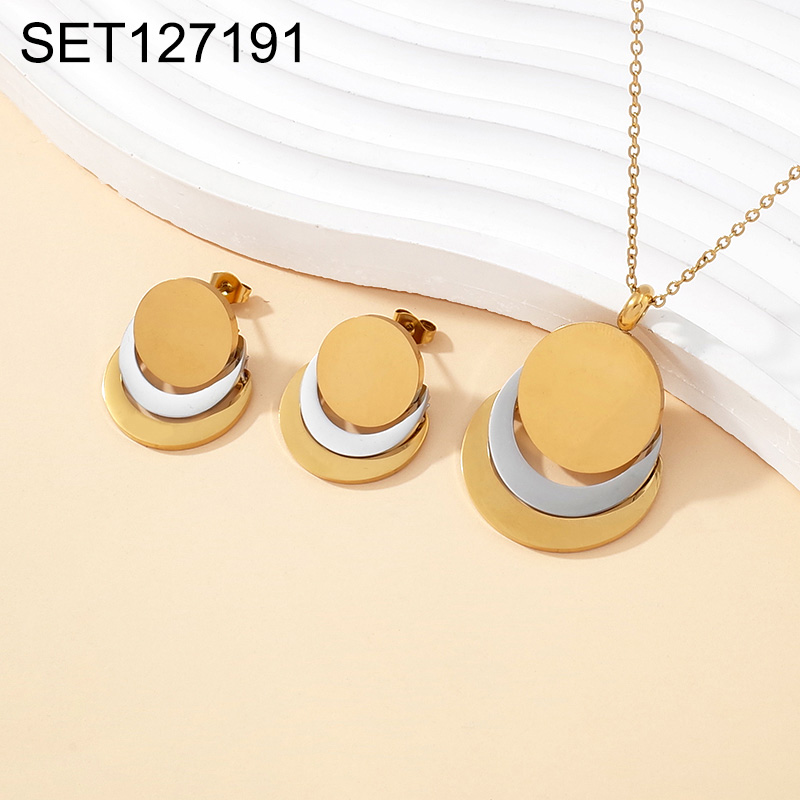 Level B Stainless Steel New Trendy Women Jewelry Round Two Tone SET