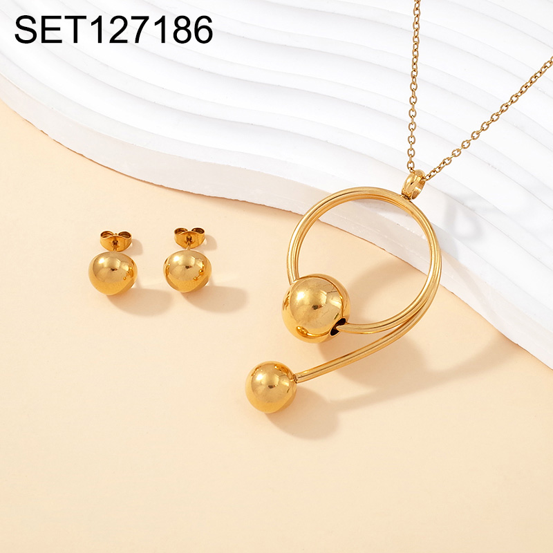 Level B Stainless Steel New Trendy Women Jewelry Round Beads Golden SET