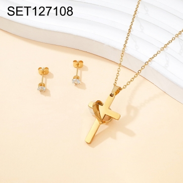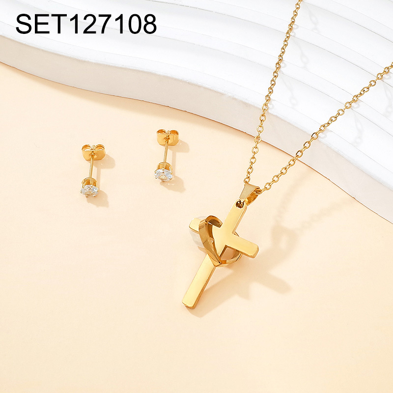 Level B Stainless Steel New Trendy Women Jewelry Heart Cross Golden SET
