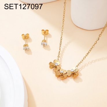 Level B Stainless Steel New Trendy Women Jewelry Flower Golden SET
