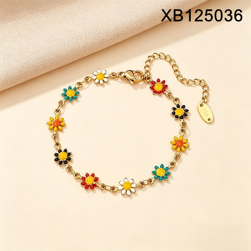 Level B Stainless Steel New Trendy Children Jewelry Drip Oil/Enamel Flower Golden Bracelet