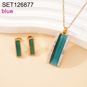 Home > Stainless Steel Sets > Semi-precious Stones Jewelry Sets > Level B Stainless Steel New Trendy Women Jewelry Rectangle Opal Golden SET