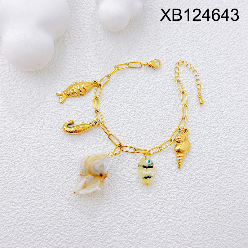Home > Stainless Steel Bracelets > Level B Stainless Steel New Trendy Women Jewelry Summer beach Animal Conch Seahorse Fish Golden Bracelet