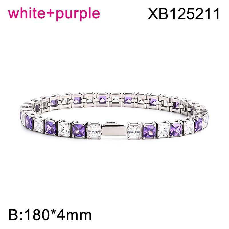 Level B Hot Sale Women Jewelry Steel color White+Purple Square 316 Stainless Steel Cubic Zirconia Tennis Bracelet