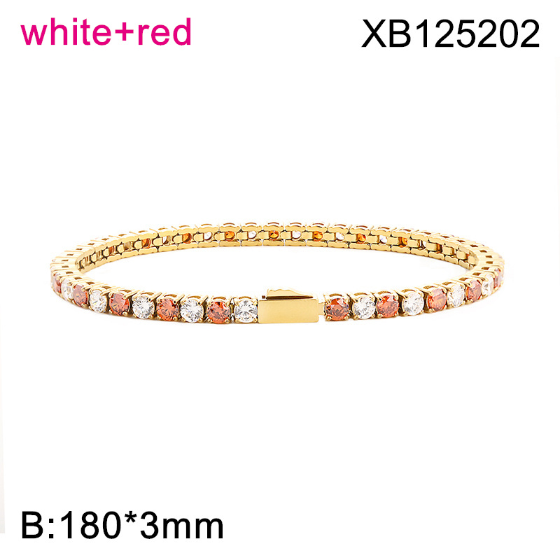 Level B Hot Sale Women Jewelry Golden White+Red Round 316 Stainless Steel Cubic Zirconia Tennis Bracelet