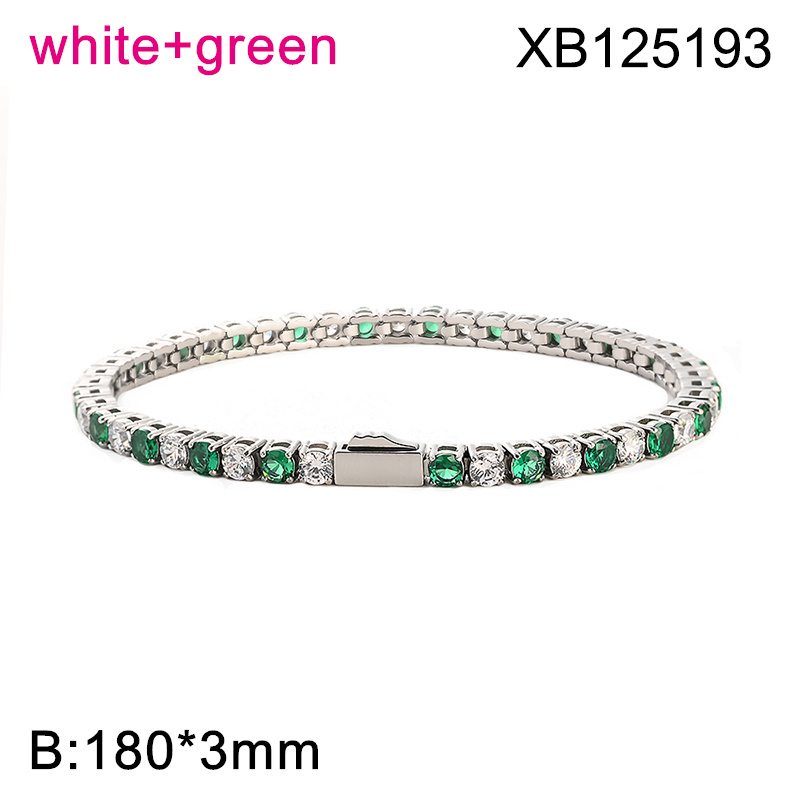 Level B Hot Sale Women Jewelry Steel color White+Green Round 316 Stainless Steel Cubic Zirconia Tennis Bracelet
