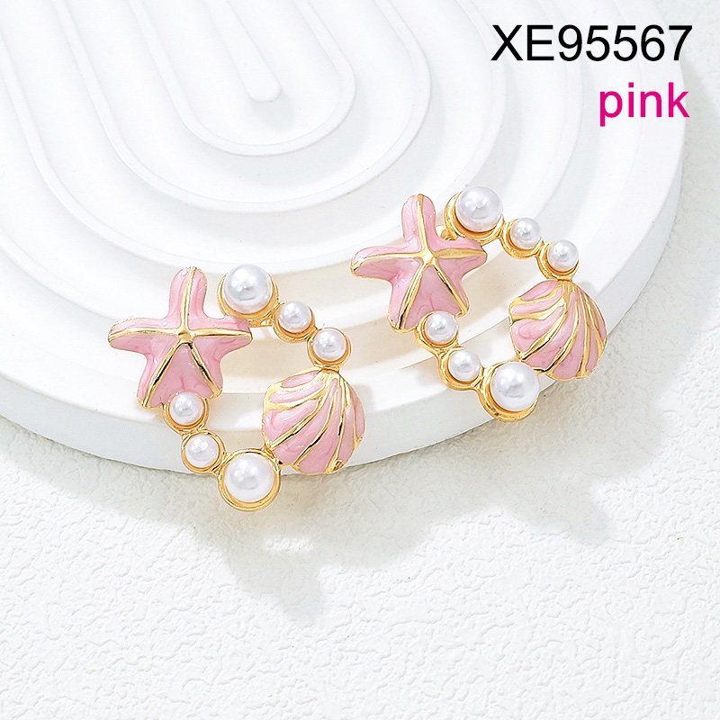 Level B Stainless Steel New Trendy Women Jewelry Pearl Style/Plastic Beads Summer beach Drip Oil/Enamel Pink Animal Shell Starfish Golden Earrings