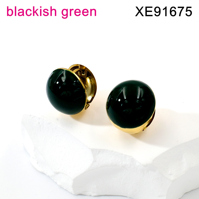 Home > Stainless Steel Earrings > Epoxy Earrings > Level B Stainless Steel Jewelry New Trendy Drip Oil/Enamel Blackish green Round Golden Hoop Earring