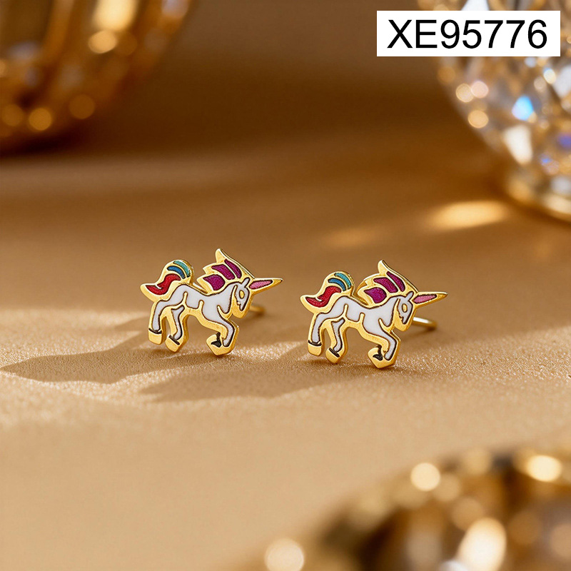 Home > Stainless Steel Earrings > Epoxy Earrings > Level B Stainless Steel New Trendy Women Jewelry Drip Oil/Enamel Unicorn Golden Earrings