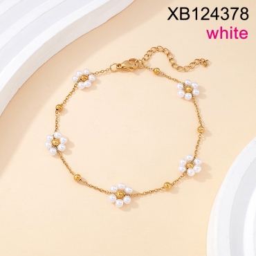 Level B Stainless Steel New Trendy Women Jewelry Pearl Style/White Plastic Beads Flower Golden Bracelet