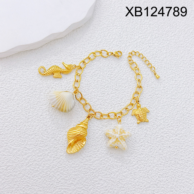 Home > Stainless Steel Bracelets > Other Bracelets > Level B Stainless Steel New Trendy Women Jewelry Summer beach Animal Conch Seahorse Turtle Golden Bracelet