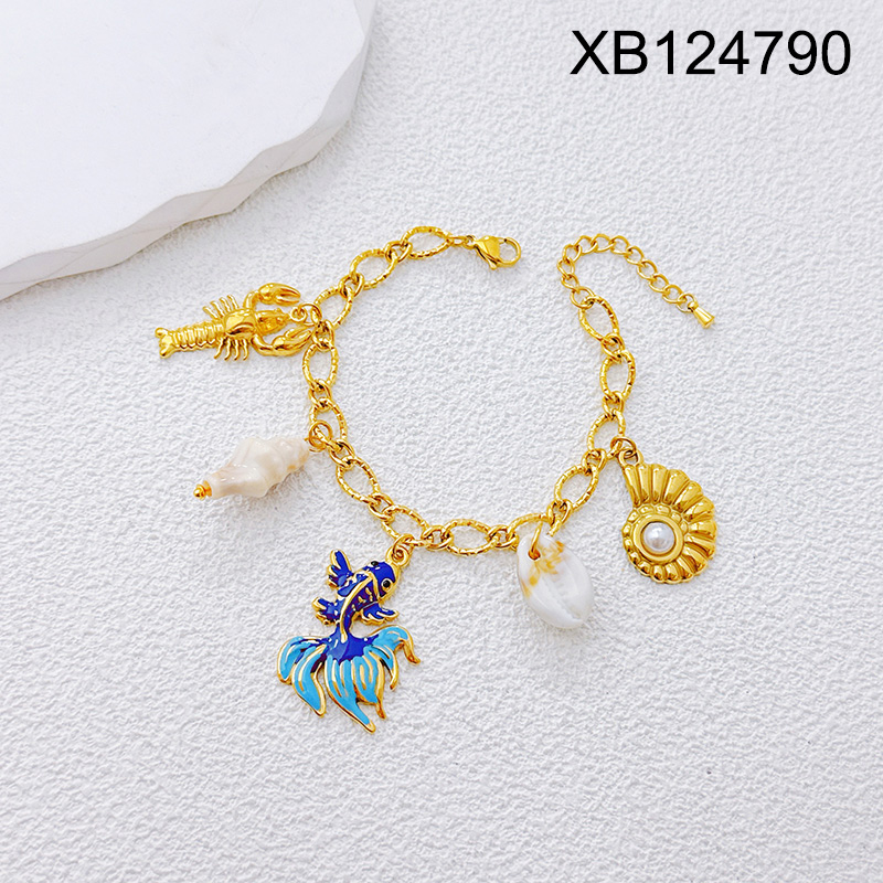 Level B Stainless Steel New Trendy Women Jewelry Summer beach Animal Fish Shrimp Conch Golden Bracelet
