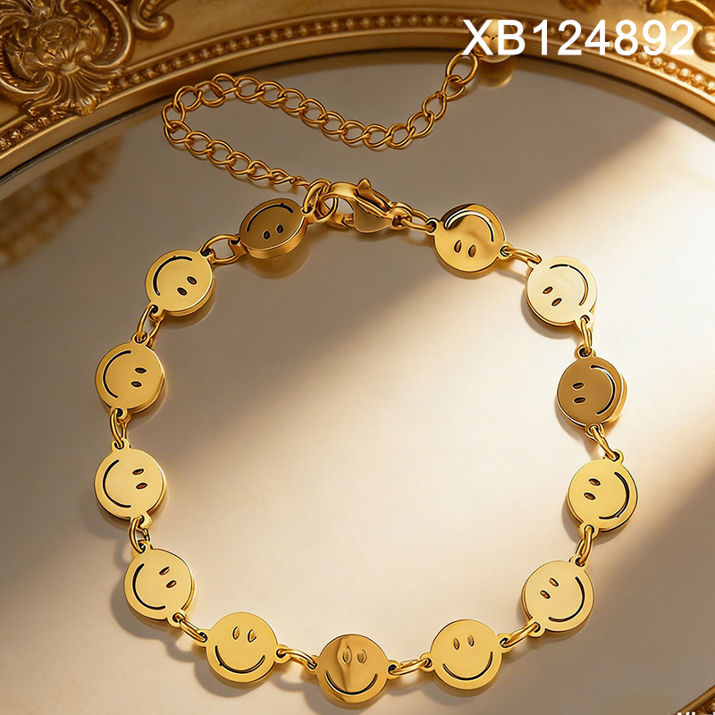 Home > Stainless Steel Bracelets > Other Bracelets > Level B Stainless Steel New Trendy Women Jewelry Smiling face Golden Bracelet