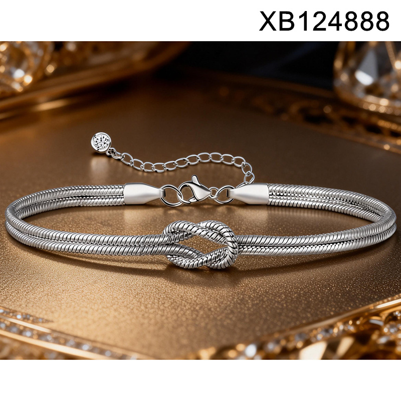 Level B Stainless Steel New Trendy Women Jewelry Two Layers Chain Knot Steel color Bracelet