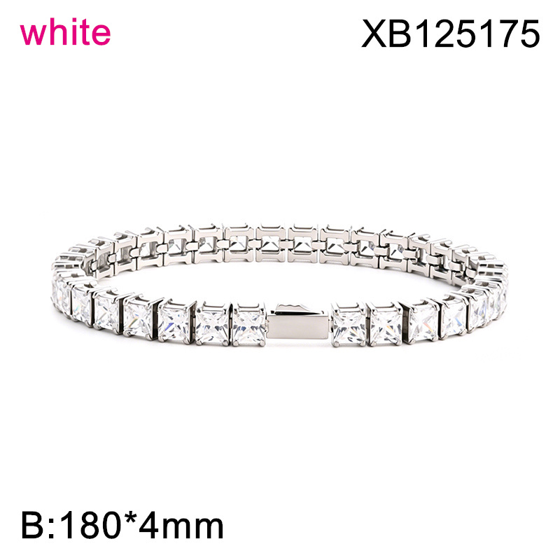 Level B Hot Sale Women Jewelry Steel color White Square 316 Stainless Steel Cubic Zirconia Tennis Bracelet