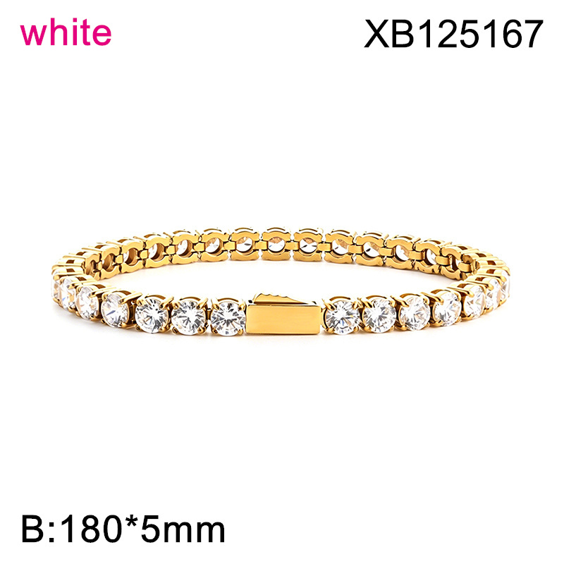 Home > Stainless Steel Bracelets > Other Bracelets > Level B Hot Sale Women Jewelry Golden White Round 316 Stainless Steel Cubic Zirconia Tennis Bracelet