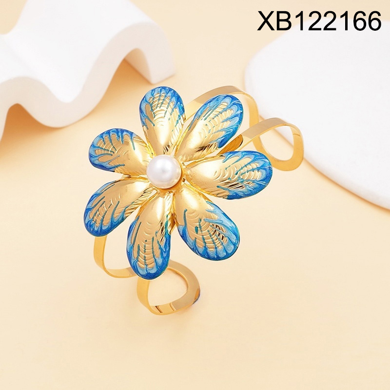 Home > Stainless Steel Bracelets > Other Bangles > Level B Stainless Steel New Trendy Women Jewelry Pearl Style/Plastic Beads Flower Golden Open Bangle;Bangle size can be adjusted freely