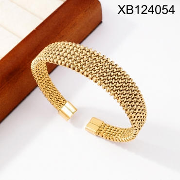 Level B Stainless Steel New Trendy Women Jewelry Golden Open Bangle;Bangle size can be adjusted freely