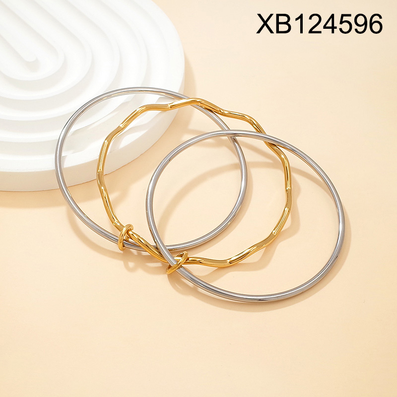 Level B Stainless Steel New Trendy Women Jewelry Two Tone Three-ring Bangle