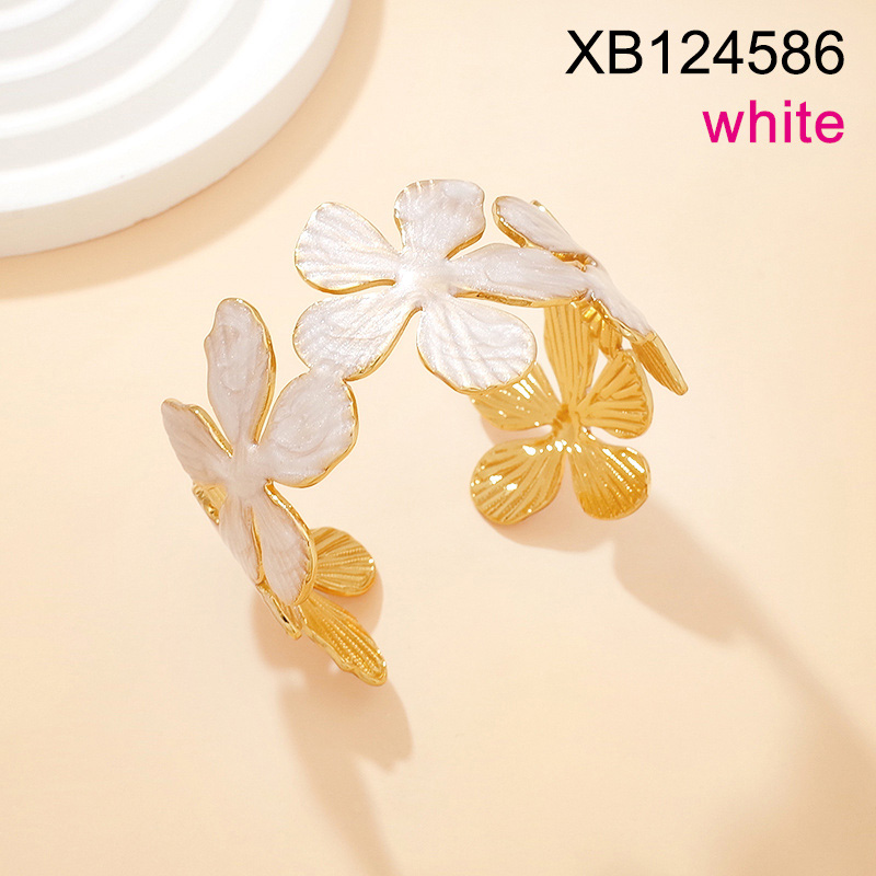 Home > Stainless Steel Bracelets > Other Bangles > Level C Stainless Steel New Trendy Women Jewelry Drip Oil/Enamel Flower Golden Open Bangle;Bangle size can be adjusted freely