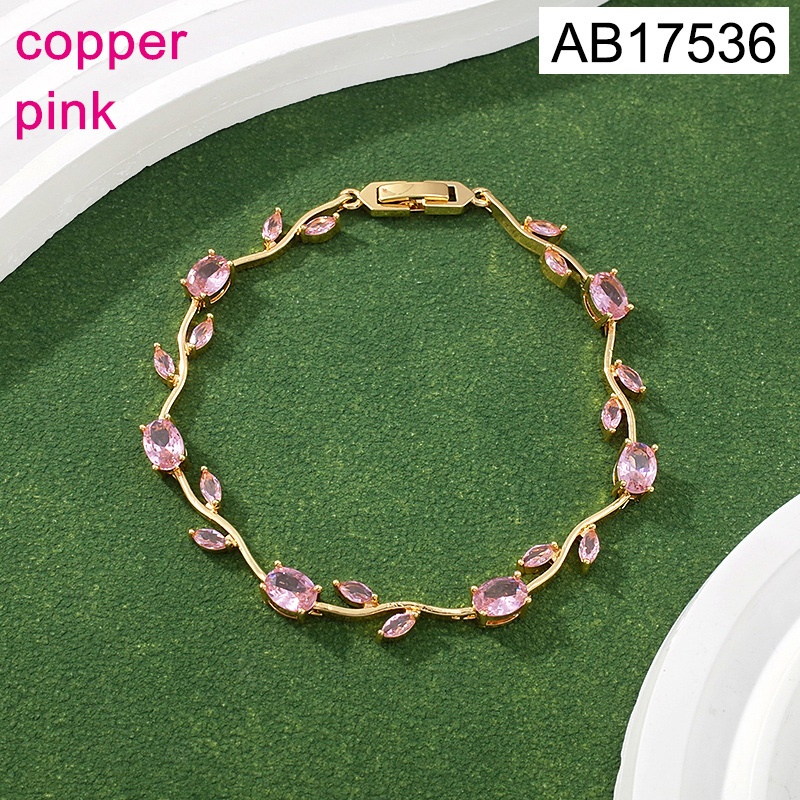 Home > Fashion Jewelry > Level B Fashion Jewelry New Trendy Women Jewelry Pink Crystal zirconium Flower Golden Bracelet;Material:copper (cobre)