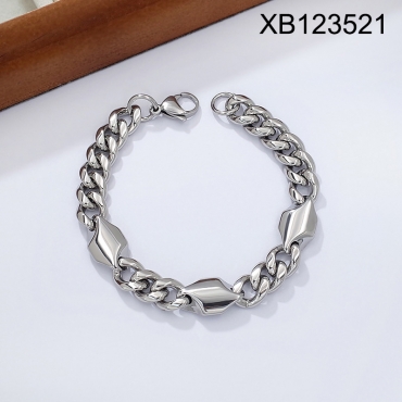 Level B Stainless Steel New Trendy Man Jewelry Cuban Chain Steel color Thick Chain Bracelet