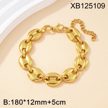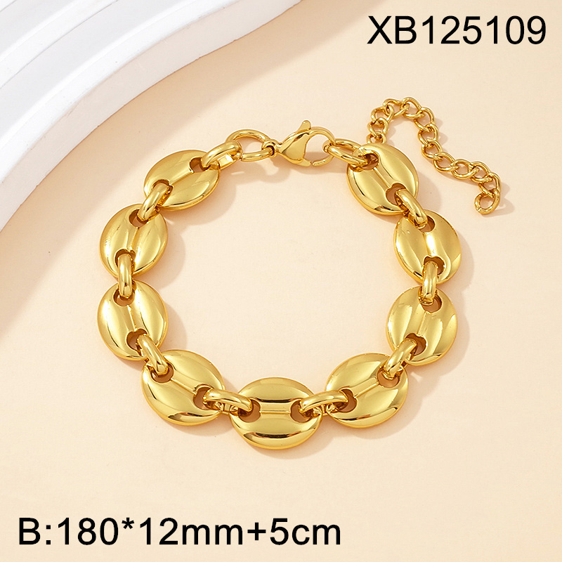Level C Stainless Steel New Trendy Women Jewelry Pig nose Oval Golden Thick Chain Bracelet