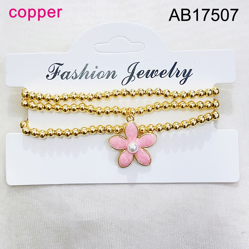 Home > Fashion Jewelry > Fashion Jewelry Bracelet > Level B Fashion Jewelry New Trendy Women Jewelry Niche Design Layered Jewelry Round Beads Flower Golden Elastic Bracelet;Material:copper (cobre)