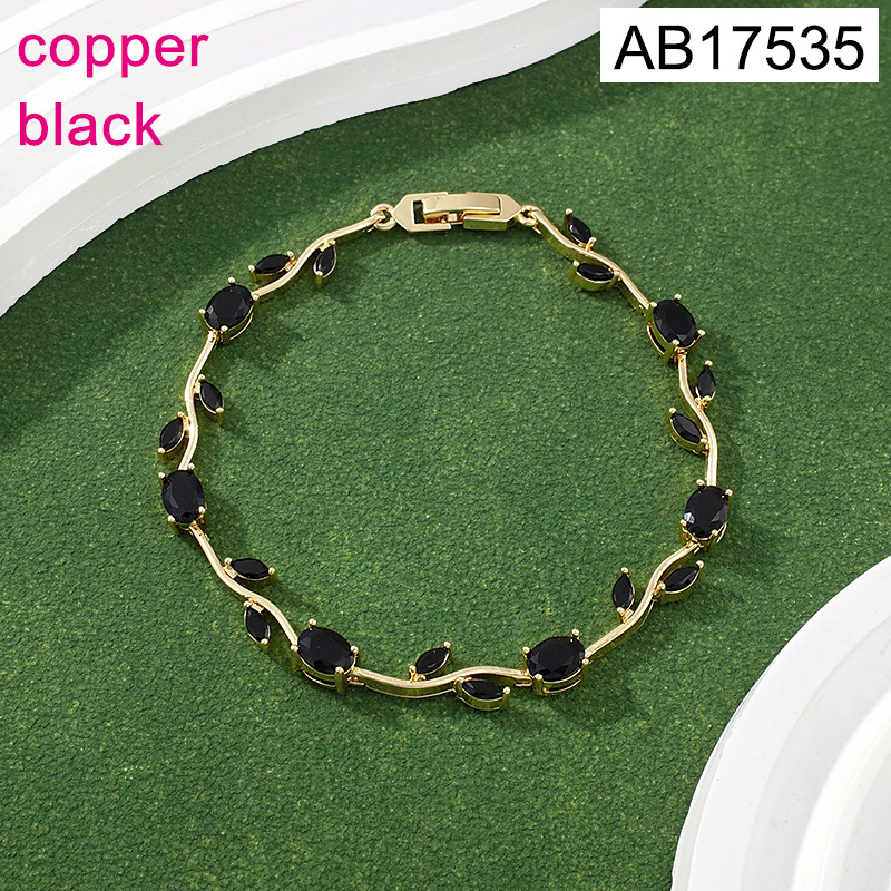 Home > Fashion Jewelry > Fashion Jewelry Bracelet > Level B Fashion Jewelry New Trendy Women Jewelry Black Crystal zirconium Flower Golden Bracelet;Material:copper (cobre)
