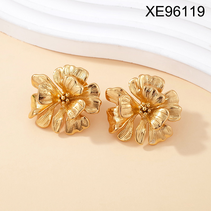 Home > Stainless Steel Earrings > Level B Stainless Steel New Trendy Women Jewelry Casting Flower Golden Earrings