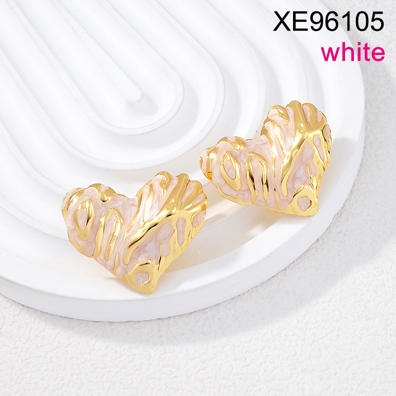 Home > Stainless Steel Earrings > Level B Stainless Steel New Trendy Women Jewelry Drip Oil/Enamel White Heart Golden Mother's Day Earrings