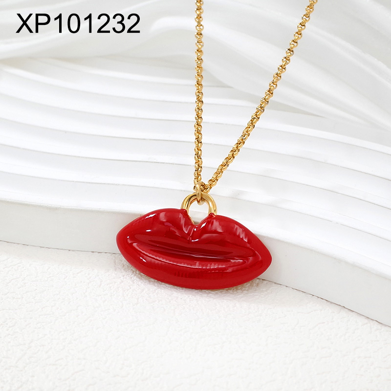 Level B Stainless Steel New Trendy Women Jewelry Drip Oil/Enamel Lips Golden Pendant
