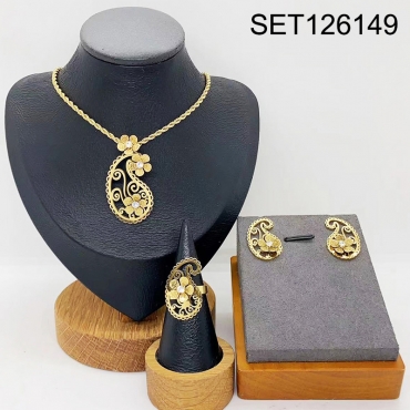 > Level B Stainless Steel New Trendy Women Jewelry Water Drip Flower Golden 3pcs SET