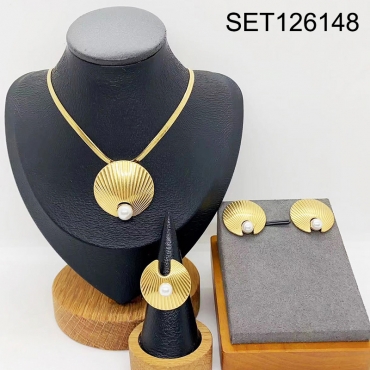 > Level B Stainless Steel New Trendy Women Jewelry Pearl Style/Plastic Beads Golden 3pcs SET