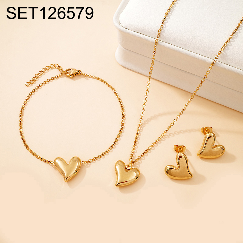 Home > Stainless Steel Sets > 3pcs Sets > Level B Stainless Steel New Trendy Women Jewelry Heart Golden 3pcs SET