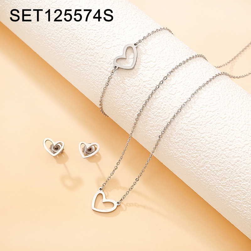 Level A Stainless Steel New Trendy Women Jewelry Heart Steel color 3pcs SET