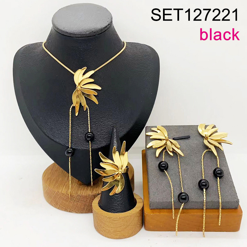 Level B Stainless Steel New Trendy Women Jewelry Flower Golden 3pcs SET