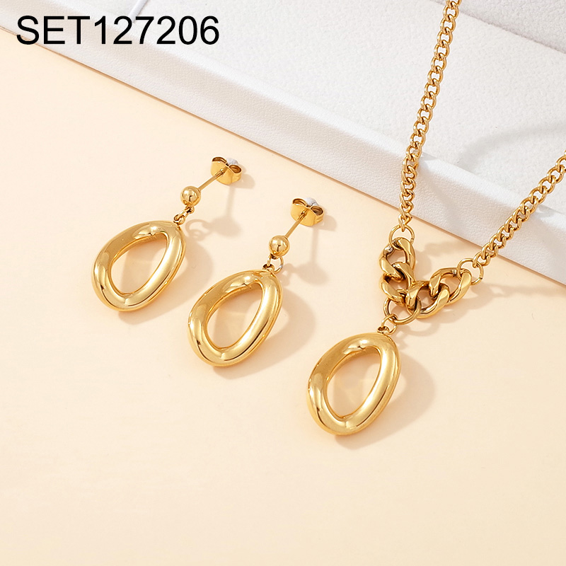 Level A Stainless Steel New Trendy Women Jewelry Oval Golden SET