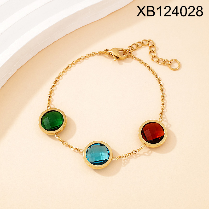Level A Stainless Steel New Trendy Women Jewelry Mixed color Glass Round Golden Bracelet
