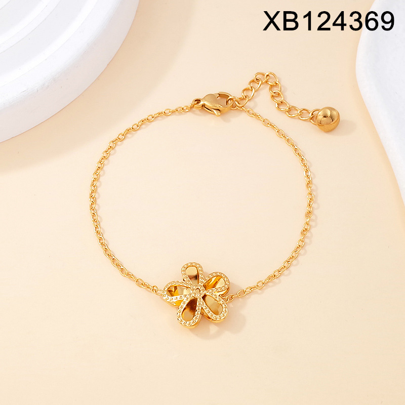 Home > Stainless Steel Bracelets > Featured Bracelets > Level A Stainless Steel New Trendy Women Jewelry Flower Golden Bracelet