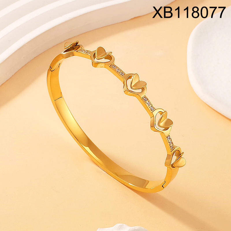 Level B Stainless Steel New Trendy Women Jewelry Heart Golden Valentine's Day CNC Bangle