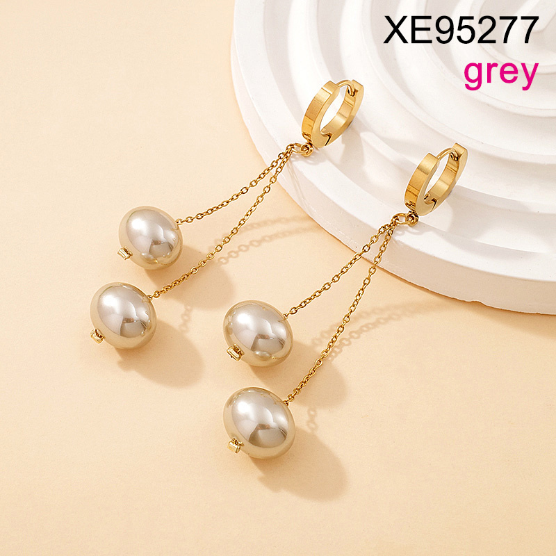Home > Stainless Steel Earrings > Clip Earrings > Level B Stainless Steel New Trendy Women Jewelry Pearl Style/Plastic Beads Golden Hoop Earrings