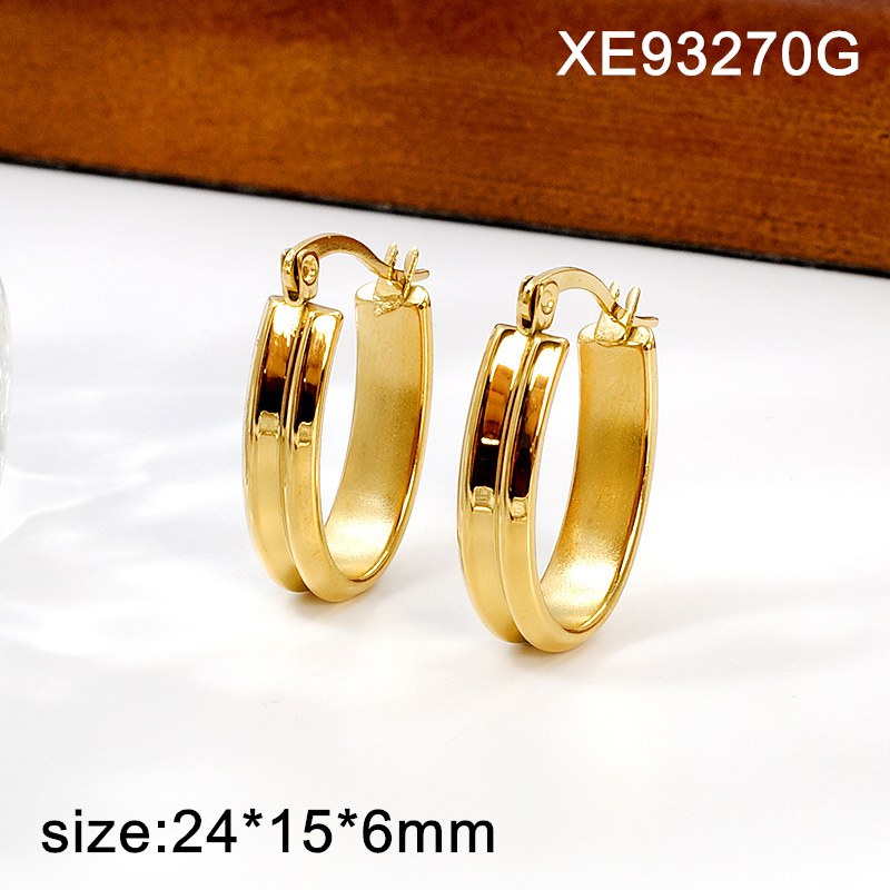 Home > Stainless Steel Earrings > Clip Earrings > Level A Stainless Steel New Trendy Women Jewelry Oval Shape Golden Hoop Earrings