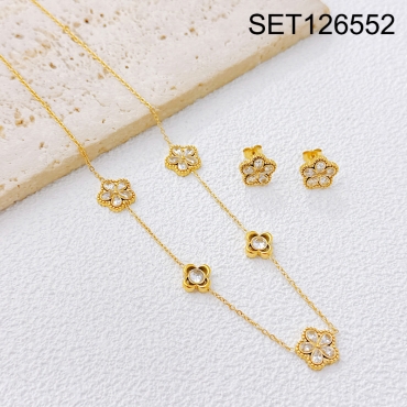 Home > Stainless Steel Sets > Hot Set Jewerly > Level B Stainless Steel New Trendy Women Jewelry Sticky Stone White SYC Flower Golden SET