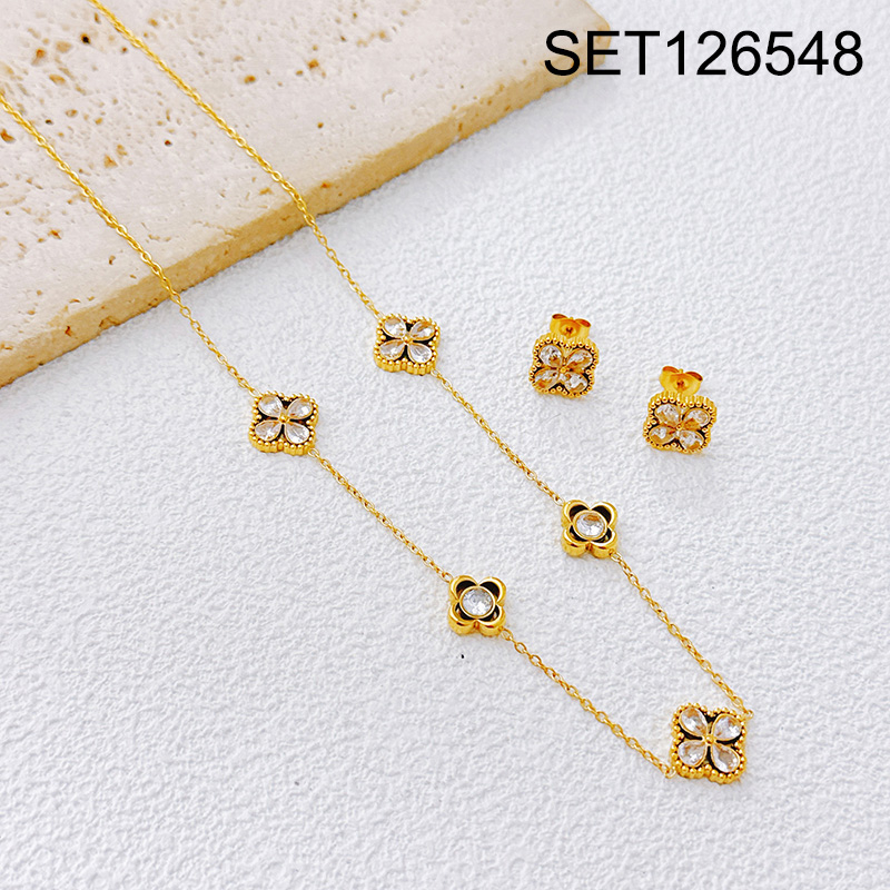 Home > Stainless Steel Sets > Hot Set Jewerly > Level B Stainless Steel New Trendy Women Jewelry Sticky Stone White SYC Golden SET