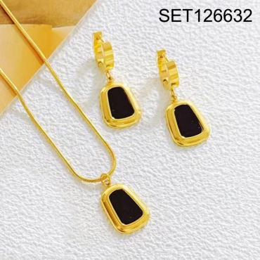 Home > Stainless Steel Sets > Hot Set Jewerly > Level B Stainless Steel New Trendy Women Jewelry Black Geometry Golden SET
