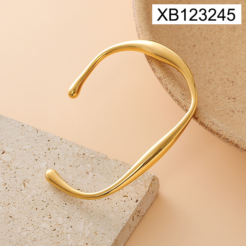 > Level B Stainless Steel New Trendy Women Jewelry Golden Open Bangle;Bangle size can be adjusted freely