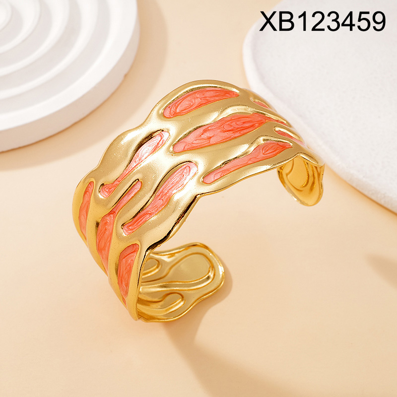 Level C Stainless Steel New Trendy Women Jewelry Drip Oil/Enamel Golden Open Bangle;Bangle size can be adjusted freely