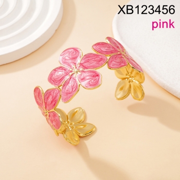 Home > Stainless Steel Bracelets > Hot Bracelet > Level C Stainless Steel New Trendy Women Jewelry Drip Oil/Enamel Flower Golden Open Bangle;Bangle size can be adjusted freely