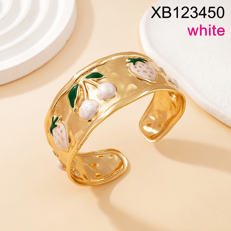 Home > Stainless Steel Bracelets > Hot Bracelet > Level C Stainless Steel New Trendy Women Jewelry Drip Oil/Enamel Summer fruit style Cherry Strawberry Golden Open Bangle;Bangle size can be adjusted freely